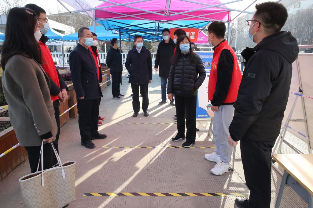 2月26日上午,党委书记陈宁,副校长胡俊鹏带领党政办公室、党委组织部、宣传部、学生处、保卫处、后勤保障处等部门负责人对学校春季开学准备工作及常态化疫情防控工作进行了检查。