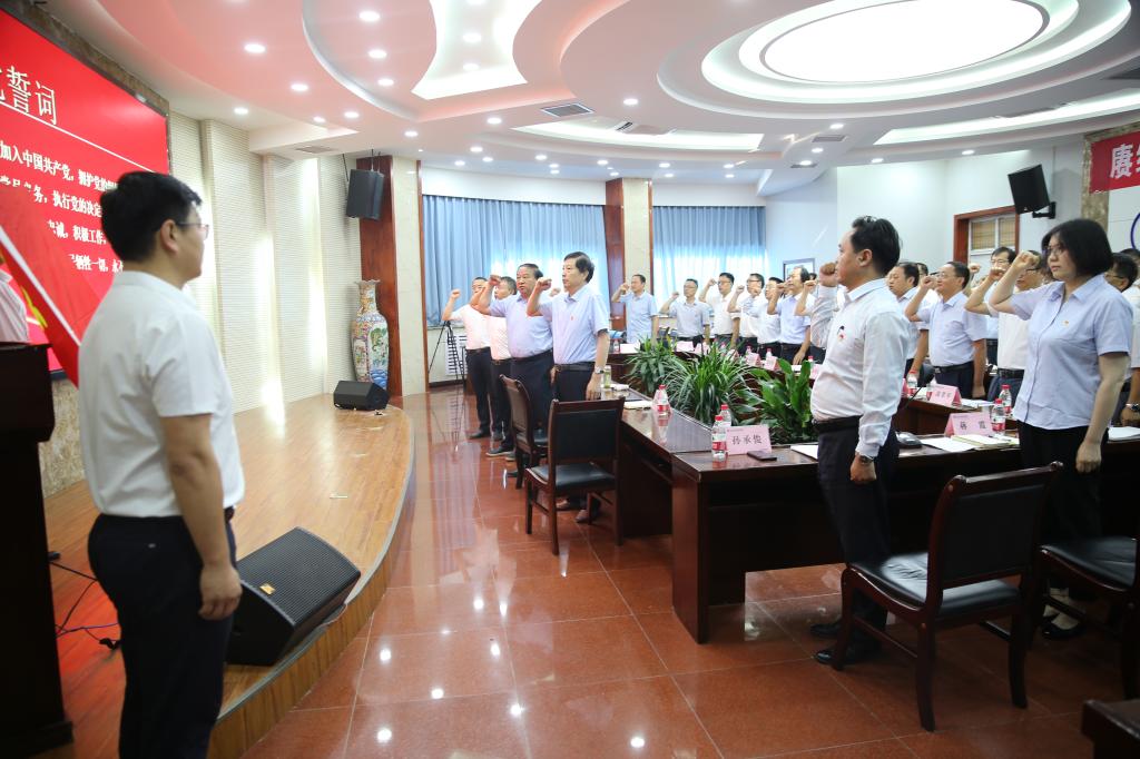 会上,全体党员起立,面对党旗庄严肃立,重温入党誓词。生态环境工程学院党总支书记孙承俊以“以党建引领双高建设,推动学院高质量发展”为题,从抓班子带队伍、抓党建促业务、抓创新育品牌、抓师德强师风、抓双创树标杆和抓乡村振兴建示范六方面,介绍了党建工作做法和取得成效。人事教师处副处长蒋霞以“深化改革、提升能力,建设新时代高素质教师队伍”为题,从以德为先、全面提升师德师风水平,引育并举、稳步提高教师队伍素质,创新驱动、有效提升教师职业认同感三方面,介绍了学校建设新时代高素质教师队伍的措施和成效,并汇报了下一步工作打算。