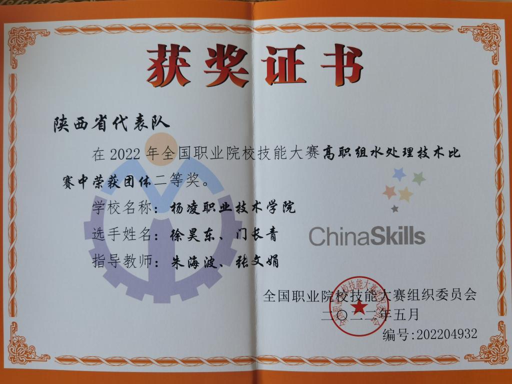 8月14日至16日,2022年全国职业院校技能大赛高职组“水处理技术”赛项在黄河水利职业技术学院举行,来自全国27个省、市、自治区的50支代表队、100名选手参加了比赛。经过7个小时的激烈比拼,我校生态环境工程学院徐昊东、门长青同学以总分第7的成绩荣获二等奖,这也是我校参加此赛项以来取得的最好成绩。