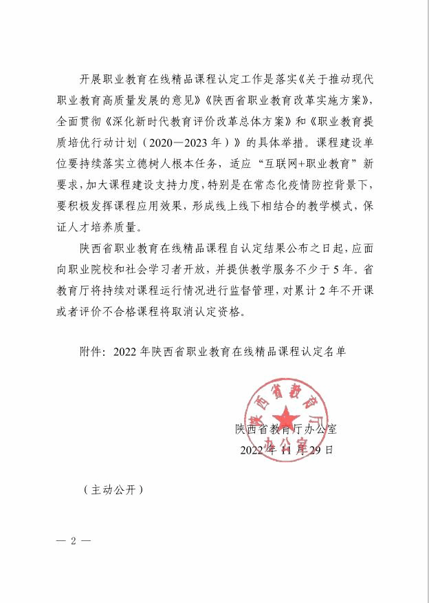 杨凌职院6门课程被认定为2022年陕西省职业教育在线精品课程