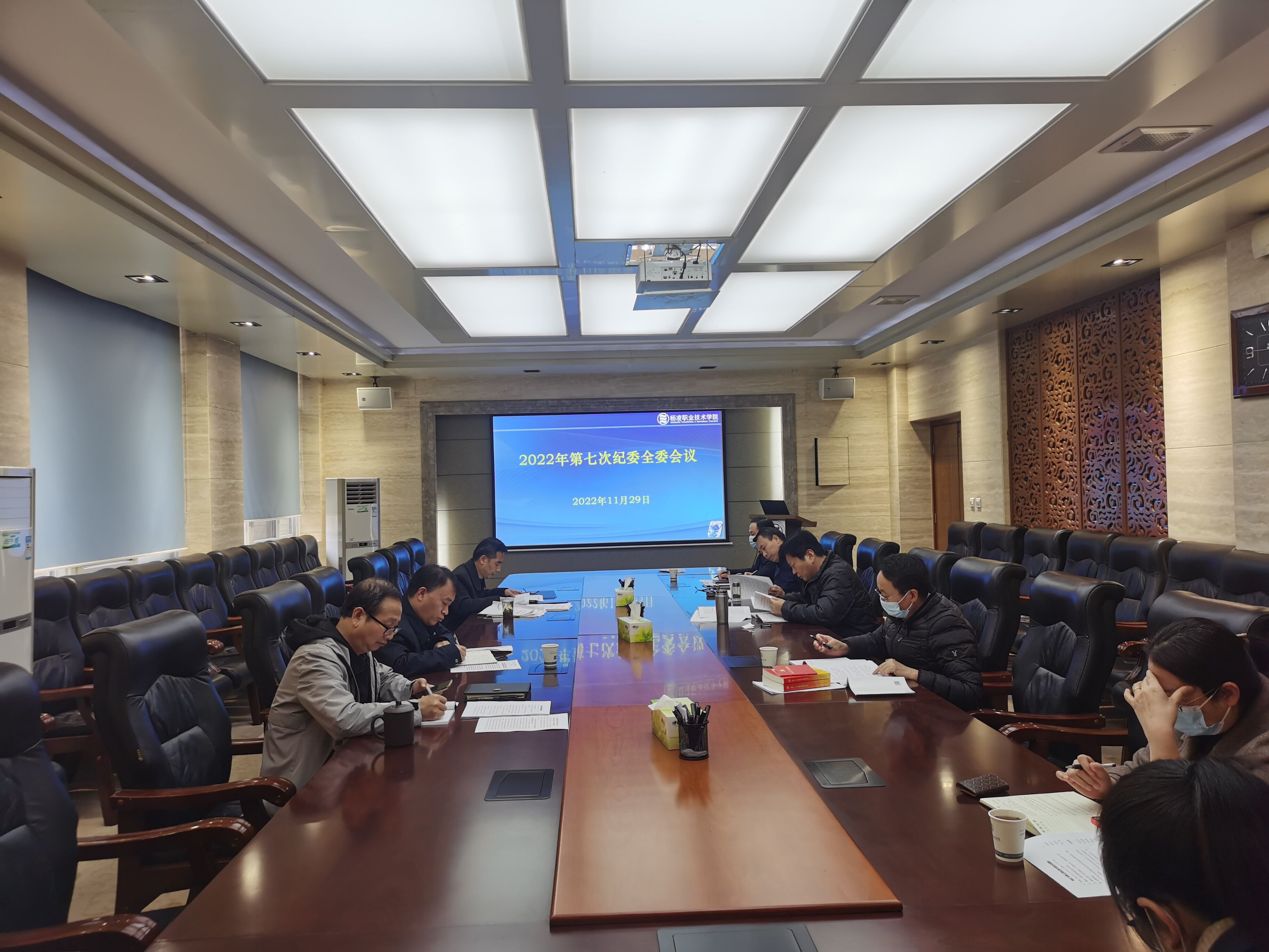 1129日,校纪委召开2022年第七次全委会议。党委副书记、纪委书记王勇胜主持会议并讲话,校纪委委员、专职纪检干部参加会议。