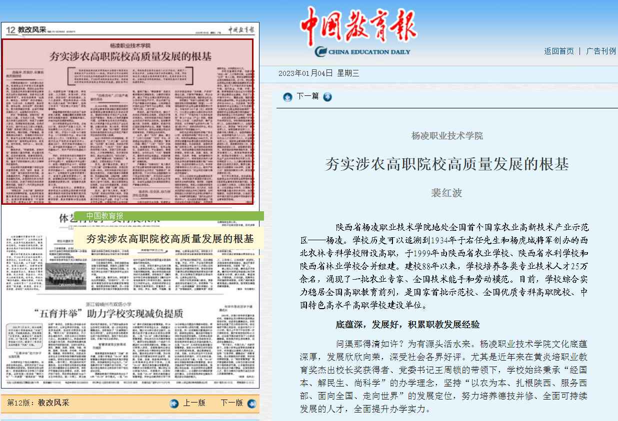【中国教育报】杨凌职业技术学院:夯实涉农高职院校高质量发展的根基