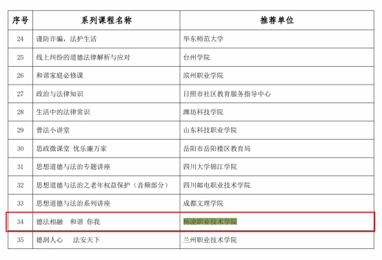 据了解,此次特色课程推介共享行动在各省级教育行政部门推荐基础上,经技术审查、内容审核、专家综合评议、教育部指定网站公示等环节,确定了913门系列特色课程,其中111所高职院校的303门课程入选。我校7门课程入选,位居全国第五、陕西第一。