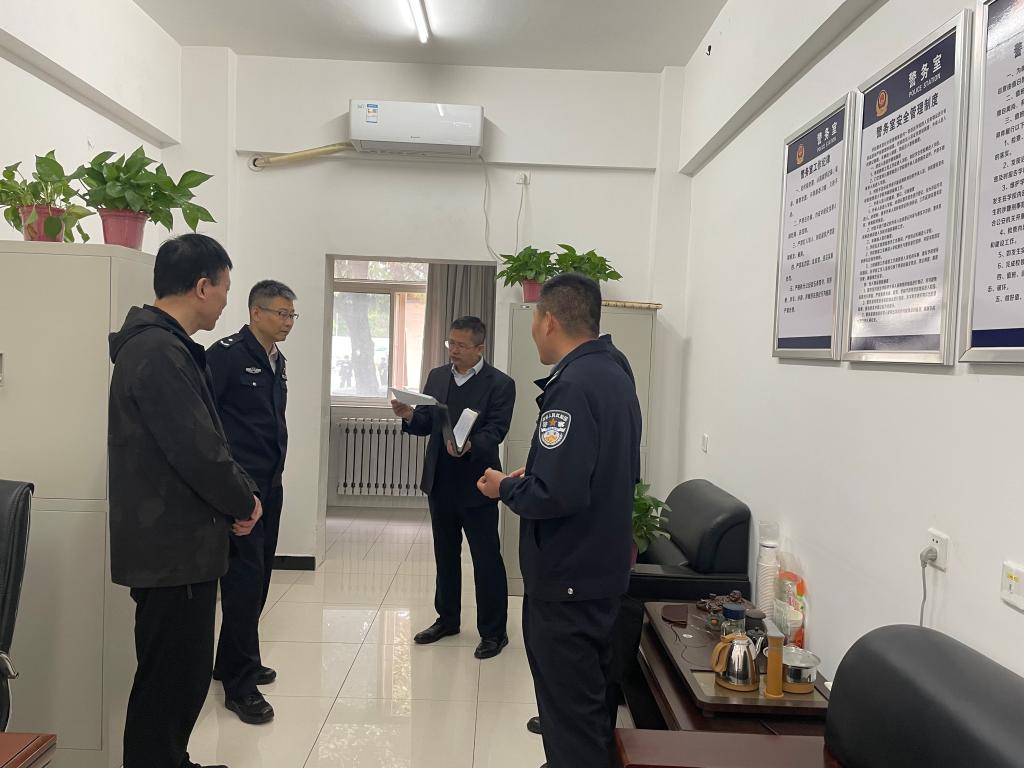 4月14日,省公安厅“下基层、解难题、办实事、严督导”第二轮次第四督导组组长、省禁毒总队政委王龙一行9人,来校督导检查校园安全工作。副校长张朝晖,学工部部长陈军峰、保卫部部长周宁陪同检查。