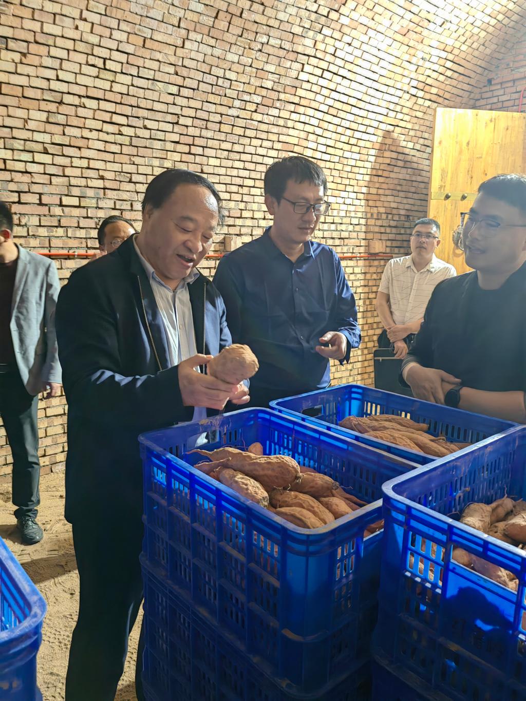 调研期间,王周锁一行参观了金沙河面业生产线车间和附属业务地下储藏室红薯窖。