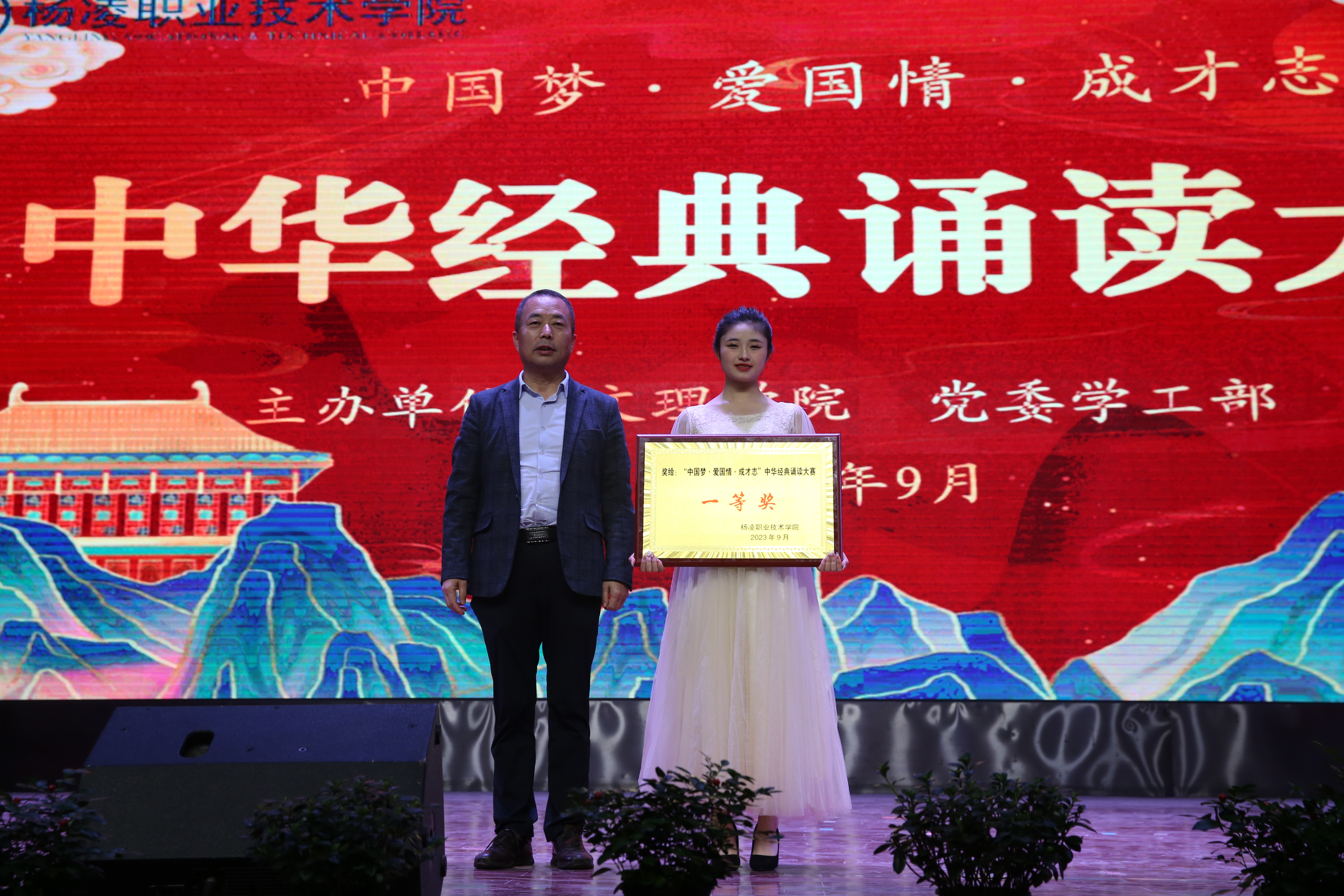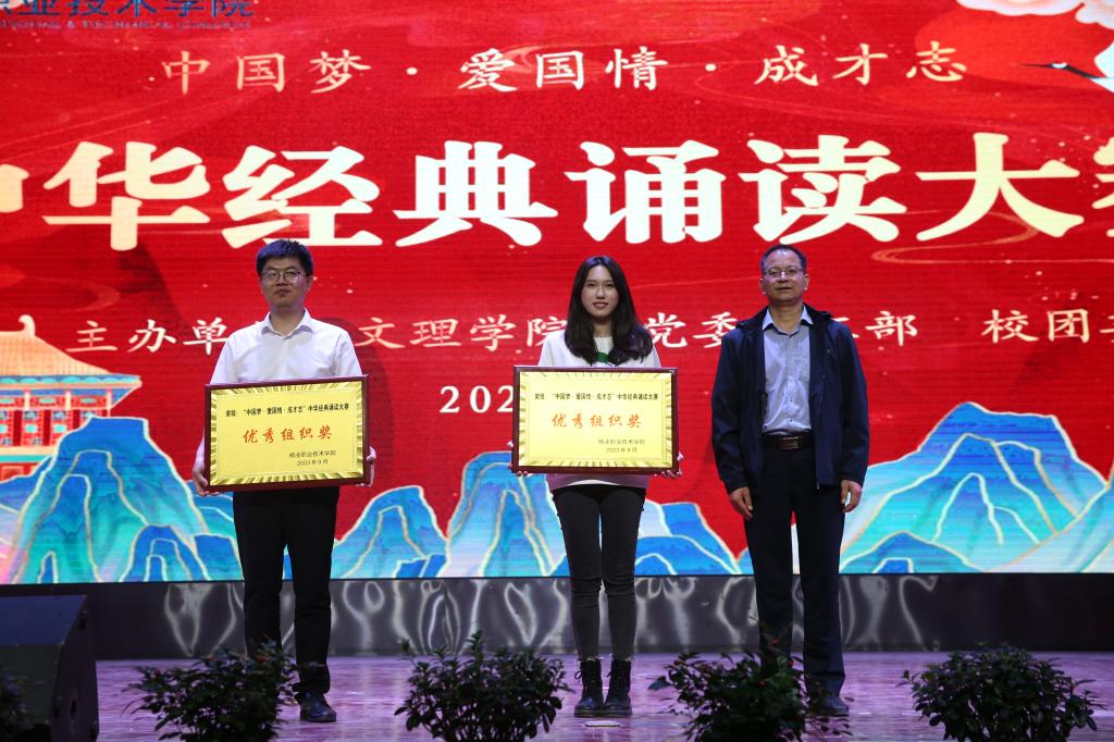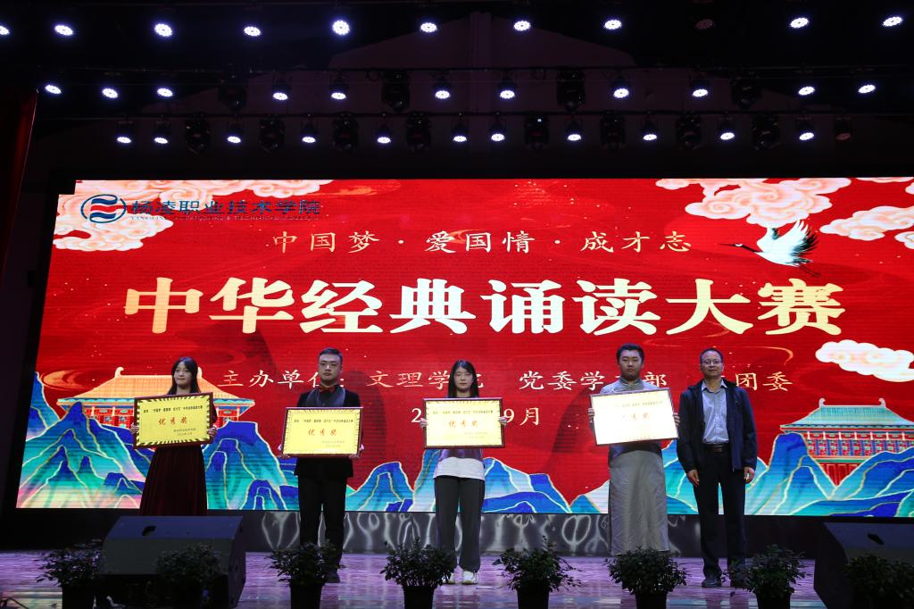 比赛以“中国梦·爱国情·成才志”为主题,旨在引领全校师生重温中华经典,增强爱党爱国情怀。各二级学院选送的11支代表队以独诵、对诵、齐诵等形式展开了近两小时的精彩角逐。动物工程学院代表队荣获一等奖,水利工程学院、机电工程学院代表队荣获二等奖,旅游与管理学院、经济与贸易学院、建筑工程学院、交通与测绘工程学院代表队荣获三等级,信息工程学院、生物工程学院、药物与化工学院、生态环境工程学院荣获优秀奖,动物工程学院、建筑工程学院荣获优秀组织奖,耿仕瑾、缑晶老师荣获优秀指导教师奖。