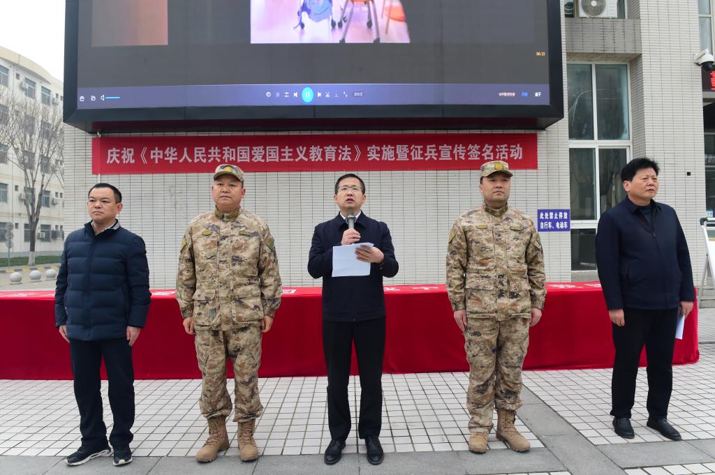 12月29日上午,学校举行庆祝爱国主义教育法实施暨征兵宣传签名活动。副校长张朝晖出席活动。