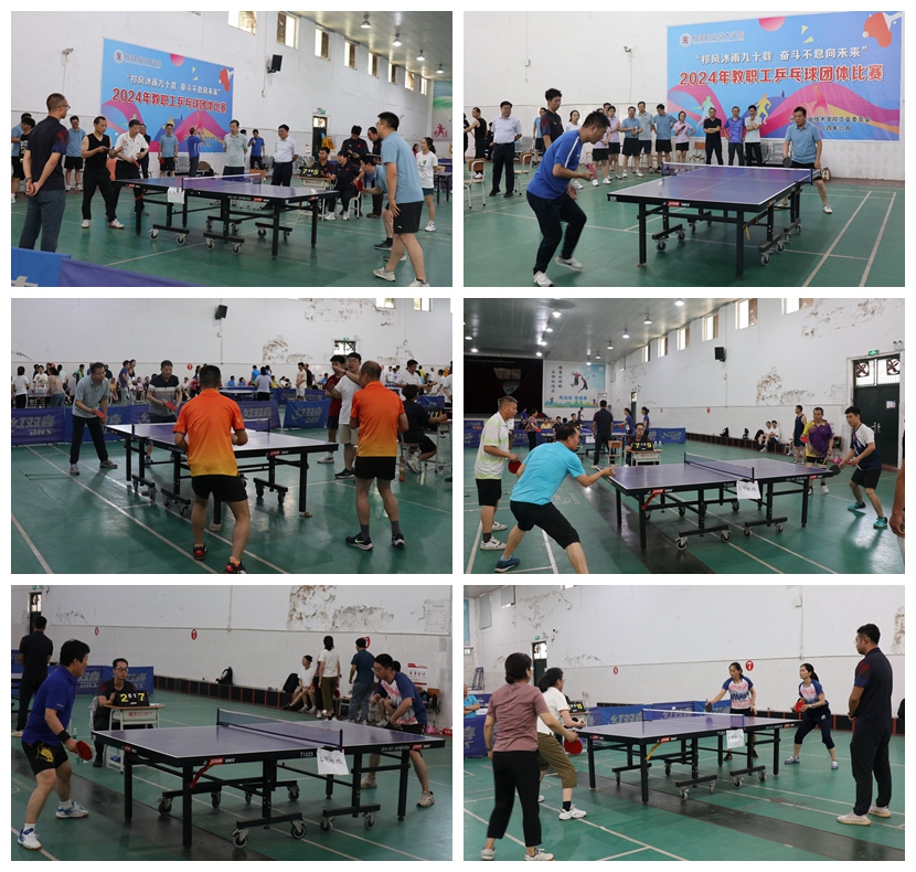 6月14至15日,学校2024年教职工乒乓球赛在西校区乒羽中心举行。党委副书记刘瑞明,副校长祝战斌出席闭幕式并为获奖队颁发奖杯。来自17个基层分会的200余名教师参加了比赛。