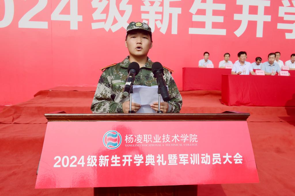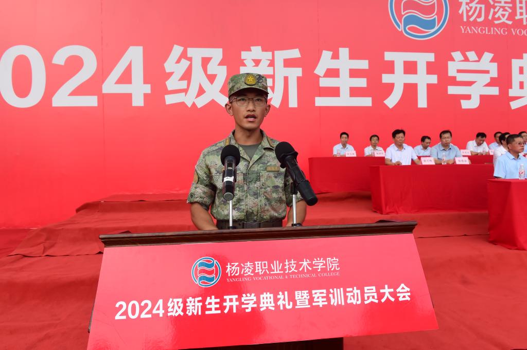 仲伟周在讲话中首先代表全校师生对来自全国各地的2024级新生表示热烈欢迎,并简要介绍了学校办学历史和基本情况。他寄语同学们,要崇德向善,做“心中有德”的新时代青年;要坚定理想,做“眼中有光”的新时代青年;要精技强能,做“肩上有责”的新时代青年;要踏实笃行,做“脚下有路”的新时代青年。他通过分享赵瑜老师“心中有德、眼中有光、肩上有责、脚下有路”的感人事迹,鼓励同学们以赵瑜老师为代表的杨职教师为榜样,心怀至善,志存高远,踏实奋进、精技强能,努力成长为可堪大用的德智体美劳全面发展的社会主义建设者和接班人。他希望,同学们要在军训中深化认识、增强观念,不断提升国防意识和爱国热情;耐得辛苦、忍得枯燥,面对各种困难,时刻保持饱满的热情和高昂的斗志;严守纪律、争当标兵,养成良好的习惯,争创佳绩,与教官共同努力,圆满完成军训任务,上好进入大学的第一课。