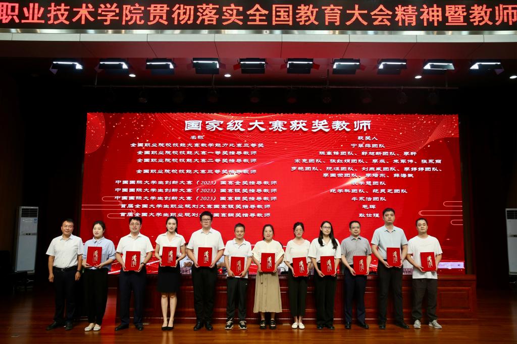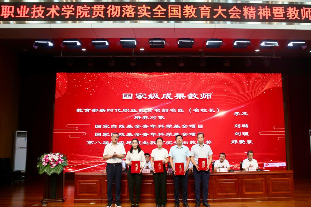 仲伟周在总结讲话中要求,全体教职工一是要提高思想认识,不忘初心使命,全心全意做学生锤炼品格、学习知识、奉献祖国的引路人;二是要涵养高尚师德,潜心修身治学,做到以德立身、以德立学、以德施教、以德育德;三是要强化责任担当,专注干事创业,进一步增强大局意识和责任意识,把握职业教育大趋势,学习典型、对标先进,厘清思路、守正创新,倾情倾心倾力、抓紧抓实抓好教育教学,提升专业能力。他希望,受表彰的同志珍惜荣誉、谦虚谨慎、再接再厉,在工作中积极发挥模范带头作用;全体教职工以受表彰的同志为榜样,立足本职、敬业爱岗、扎实工作,全力推动学校“双高”、本科、滨河校区三大重点建设高质量开展。