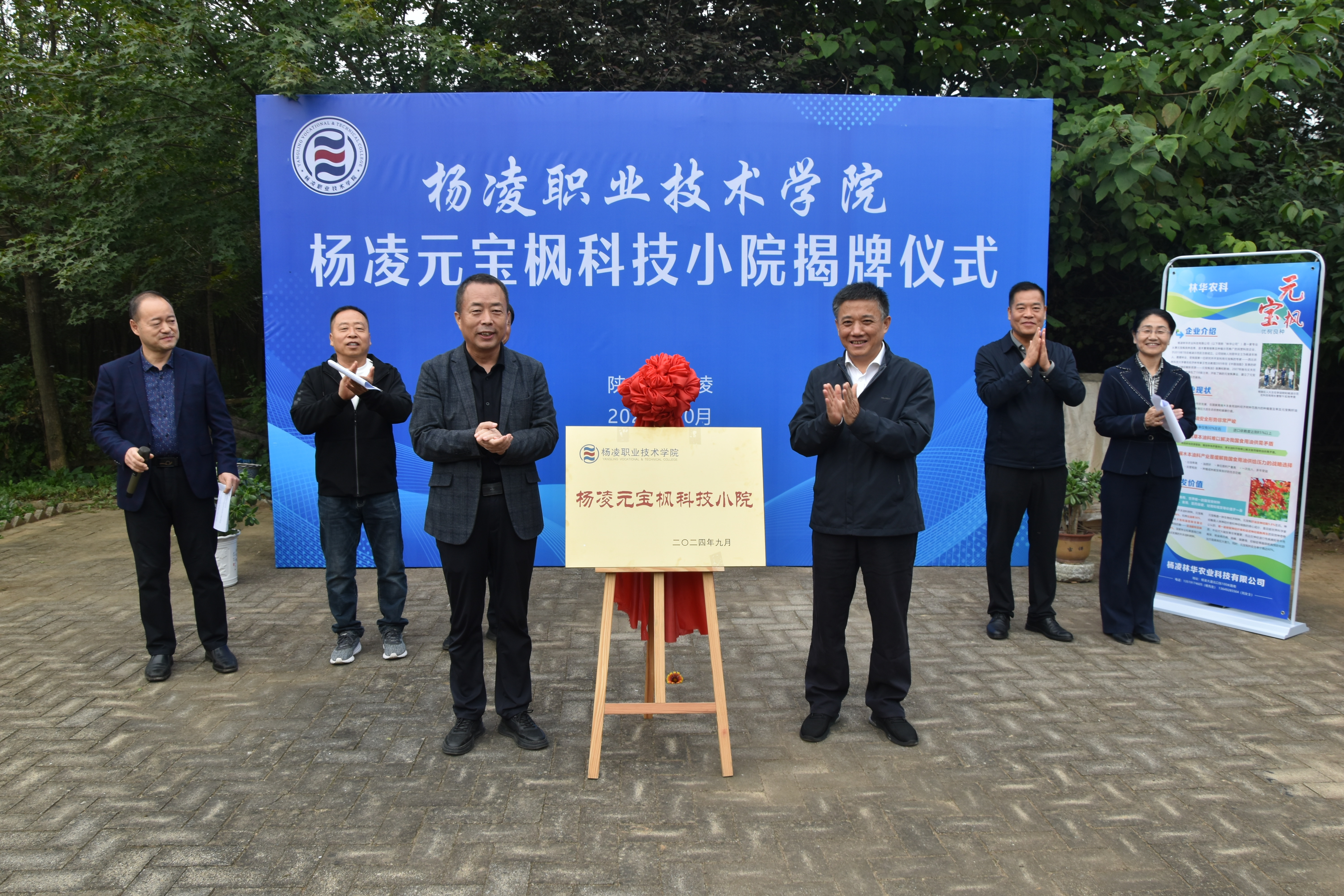 10月12日,我校杨凌元宝枫科技小院揭牌仪式在杨凌举行。杨陵区人大常委会副主任穆海军,杨陵区农业农村局副局长张海峰,杨陵区科技局副局长袁卫华,我校副校长胡俊鹏,科技与教育研究处、生态环境工程学院负责人以及杨凌林华农业科技有限公司董事长杨成林等出席仪式。