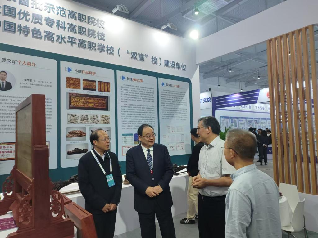 大赛期间,陕西省委教育工委副书记、省教育厅厅长王树声莅临我校展位指导,详细了解“木雕技艺”工艺流程、学生实习实训情况,对我校高技能人才培养工作予以充分肯定。党委书记韩明军、校长仲伟周陪同参观。