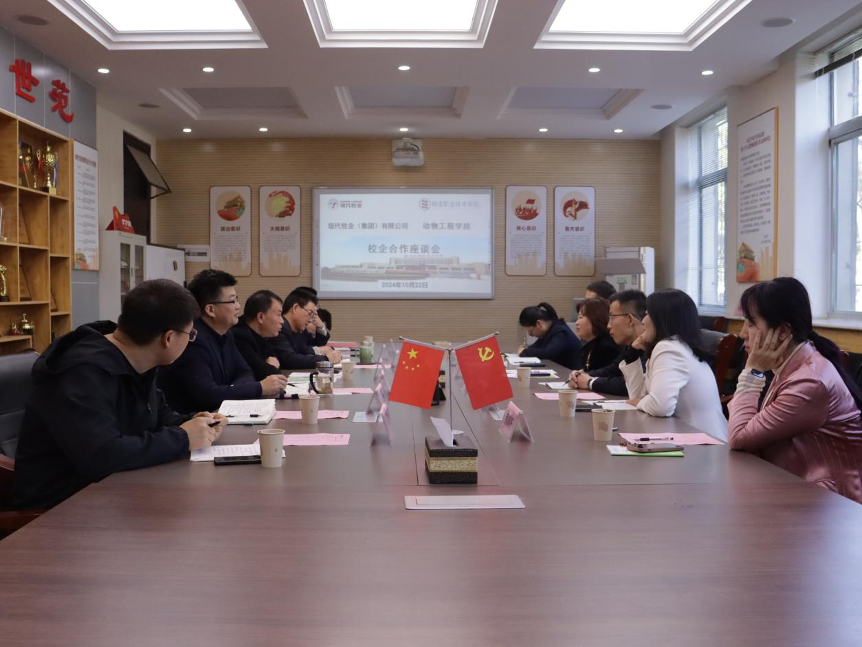 10月22日,现代牧业(集团)有限公司副总裁袁丽、赵遵阳,西部大区总经理李骁勇一行6人来校座谈,并签订校企合作协议。双方围绕资源共享、人才培养、学生就业、校企互聘等深入交流讨论,一致表示要对接人才培养和产业需求,推动校企协同育人。
