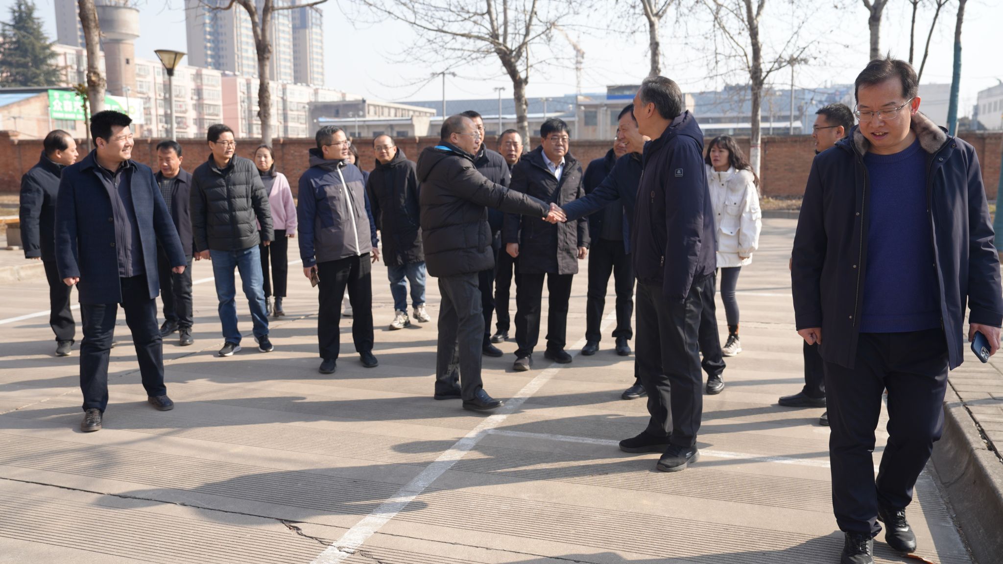 新学期伊始,为确保学校各项工作顺利开展,2月10日上午,党委书记韩明军、校长仲伟周带领校领导班子成员,深入三校区各机关处室、二级学院开展检查慰问活动。每到一处,校领导都详细询问处科级干部到岗情况,并与大家一一握手,向大家致以新春的祝福和诚挚的问候,感谢大家在过去一年中的辛勤付出,并鼓励大家在新的一年里继续努力,为学校高质量发展贡献自己的力量。