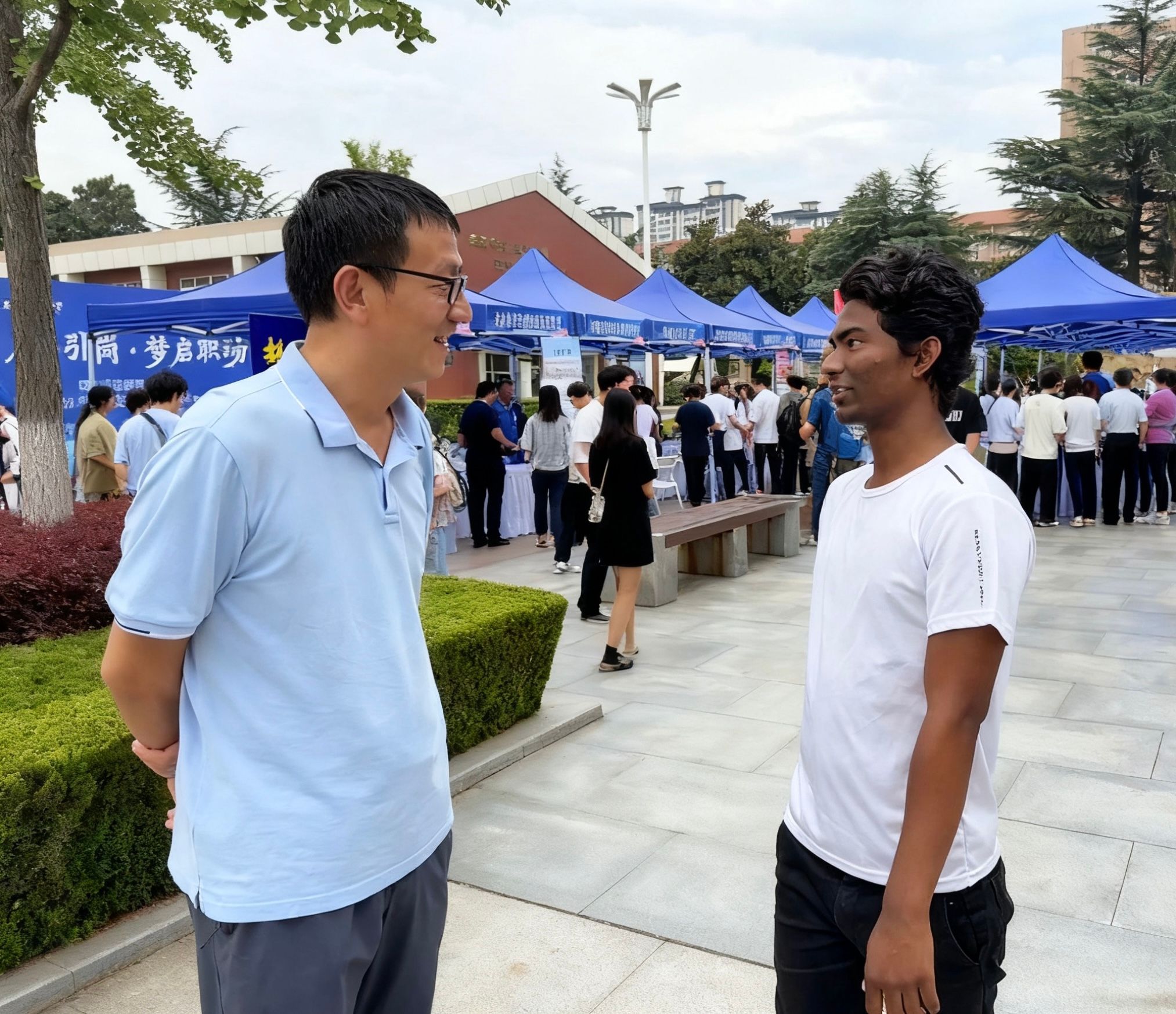 9月15日,学校在南校区1934广场举办2026届毕业生秋季首场校园双选会。副校长蒋平江到场指导,并同用人单位和毕业生现场互动交流,详细了解单位招聘和毕业生就业情况。