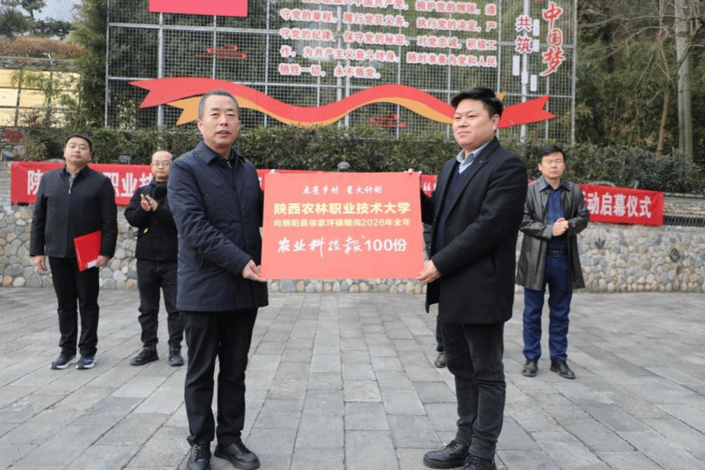 副校长胡俊鹏代表学校向徐家坪镇赠送2026年全年《农业科技报》100份