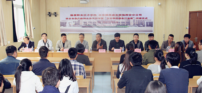 冠名仪式上,企业在2013级室内设计专业设立专项奖学金3万,并成立了“北京馨居盛业订单班”。同时,双方还签署了校企合作产教融合协议,我院向北京馨居盛业装饰西安分公司授予了校企深度合作牌匾,公司向我院授予了北京馨居盛业人才培养基地及北京馨居盛业订单班牌匾。学生处负责人向北京馨居盛业装饰西安分公4名设计师颁发了兼职教师聘任书,公司向我院5名教师颁发了高级顾问聘任书。