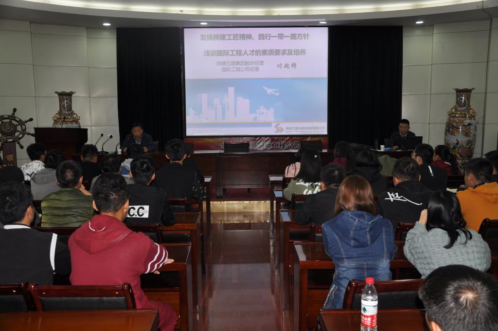 在开班仪式上,建筑工程分院负责人就建工国际班的意义、培养方案等方面进行了说明,并对2017级建工国际班同学提出殷切希望。随后,付超锋作了题为《发扬陕建工匠精神、践行一带一路方针,国际工程人才素质要求及培养的》的讲座,从国内经济及建筑市场环境分析、国际工程概况、中国企业走出去现状、陕建五建集团海外项目管理、陕建五建集团海外项目、国际工程人才的素质要求及培养等六方面进行了深入浅出的讲解,为国际班同学开拓了视野,指明了学习方向。