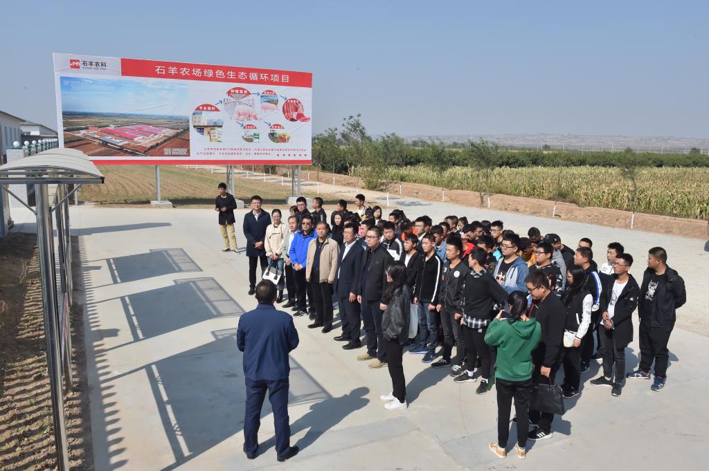 随后,校企双方领导和学生代表还参观了石羊农科位于合阳县新池镇坡南村的6000头父母代猪场并合影留念。