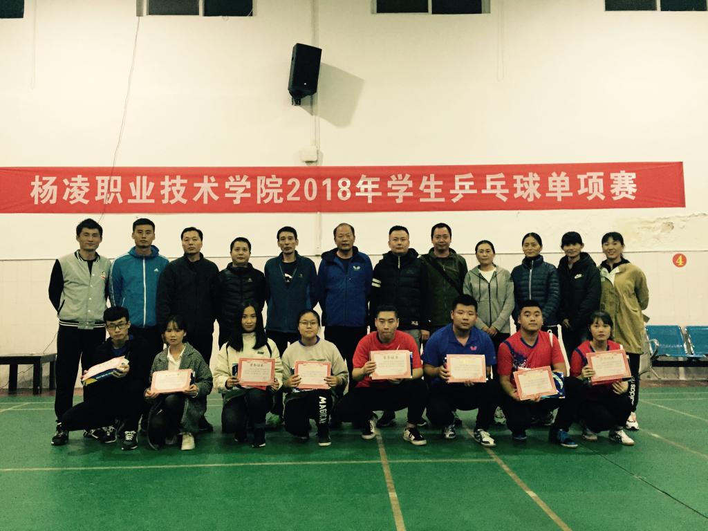 比赛历时2天,比赛项目包括男子单打、女子单打、男子双打、女子双打、男女混合双打五种。经过180场激烈比赛,最终男子单打项目,建工分院杨佳康获得第一名,机电分院吕新科获得获第二名,生态分院陈俊青和机电分院王世文并列第三名。女子单打项目,建工分院唐乐获得第一名,信息分院李玉红获得获第二名,动工分院李璐和旅管分院王怡并列第三名。男子双打项目,机电分院赵举、杜一凡获得第一名,水利分院段旺旺、张佳龙获得获第二名,机电分院张磊、刘拓和水利分院李欢、韩佳凯并列第三名。女子双打项目,水利分院王雅、王宇浩获得第一名,经贸分院吴春燕、林雅洁获得获第二名,水利分院李珍珍、杨瑞凡和建工分院陈亚、姚紫薇并列第三名。男女混合双打项目,机电分院黄嘉懿、蔡嫣妮获得第一名,经贸分院王升、曹羽瑶获得获第二名,建工分院杨浩江、李文和水利分院刘政、曹春平并列第三名。