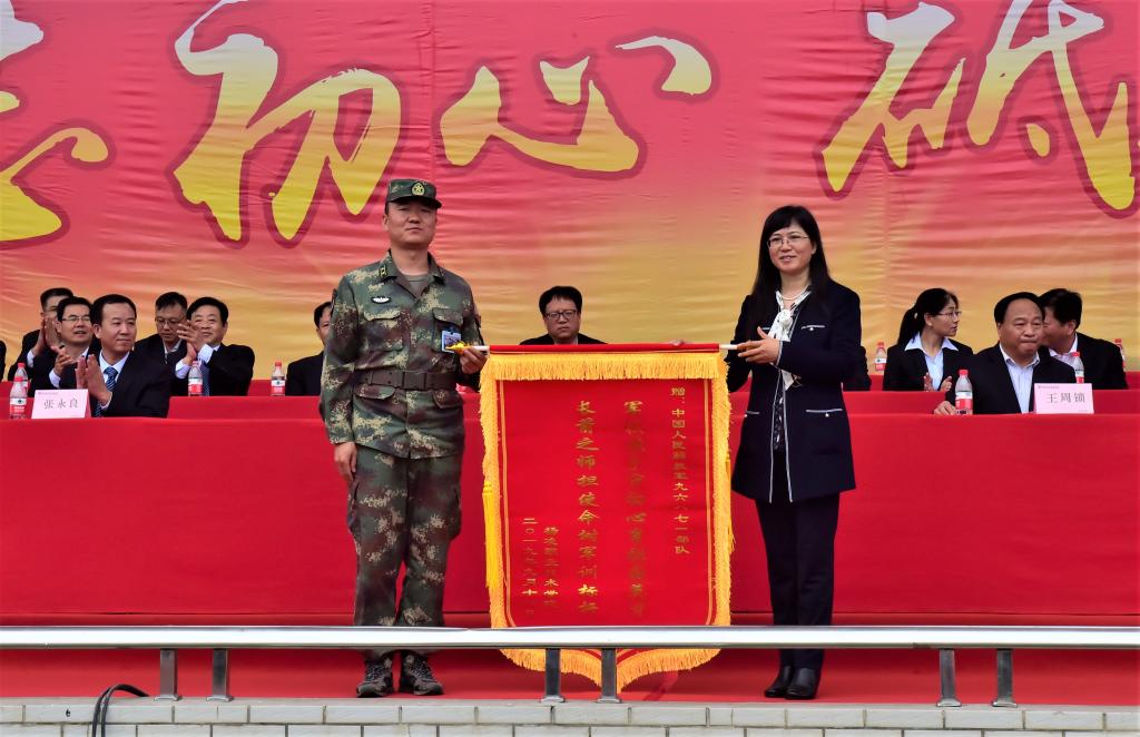 党委书记陈宁向军训部队赠送锦旗