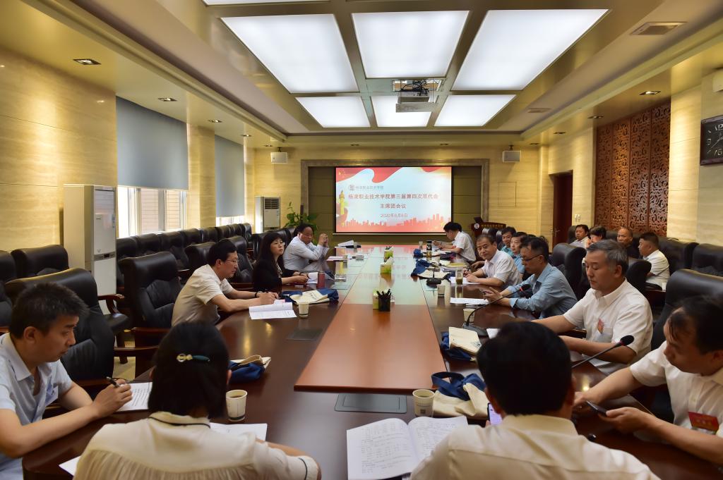 下午14:30,主席团会议召开。6个代表团团长分别汇报了各小组讨论情况和审议提案征集情况,与会主席团成员审议通过了财务报告的决议(草案)、学院工作报告的决议(草案)和《杨凌职业技术学院绩效工资分配实施办法(修订)》。