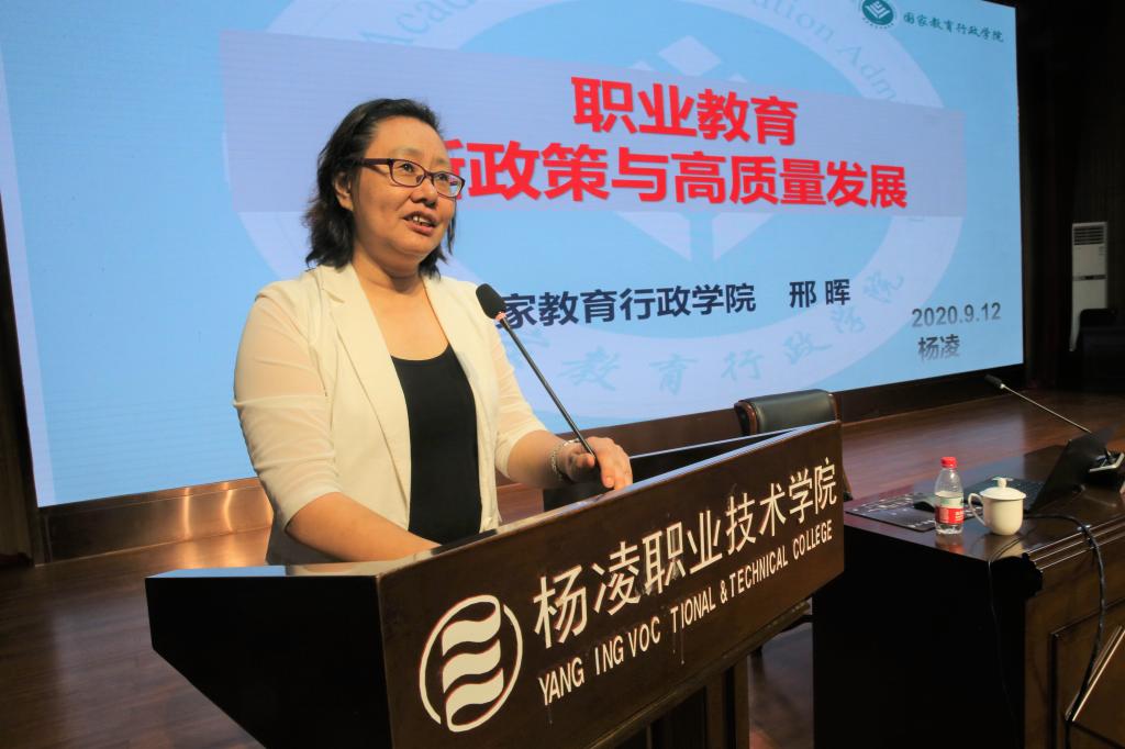 为深入贯彻学习国家职业教育与“双高”系列文件精神,树立新时代职教改革理念,推动学院“双高”建设暨“十四五”发展规划编制工作,9月12日上午,学院在南校区醒钟楼思辩堂举行了“双高”建设学术报告会,邀请国家教育行政学院学术委员会主任、职业教育研究中心主任邢晖教授作了题为《职业教育新政策与高质量发展》的报告。院长王周锁主持报告会。