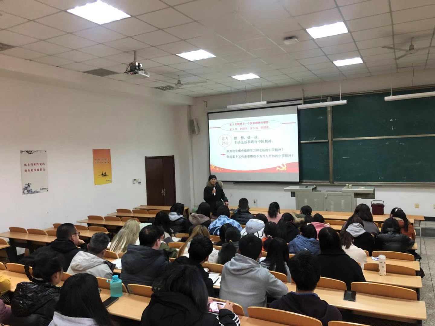 针对如何弘扬中国精神,陈宁重点讲述了同学们身边熟悉的榆林治沙过程中普通老百姓的“治沙精神”和我校“赵瑜精神”的事例。她强调,中华民族能够生生不息、薪火相传,根本原因就在于中华民族有一脉相承的精神追求、精神特质和精神脉络,“治沙精神”和“赵瑜精神”正是中华民族勤劳勇敢、自强不息精神的缩影和实践弘扬者。她勉励同学们在新时代条件下,要学好本领、打好基础、主动担当、知行合一的弘扬中国精神。