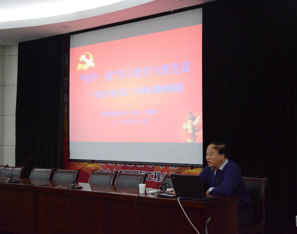 9月18日下午,学院党委副书记、院长王周锁在水韵楼二楼报告厅为建筑工程分院全体师生党员讲“两学一做”学习教育专题党课。建筑工程分院师生党员97余人参加了党课学习。