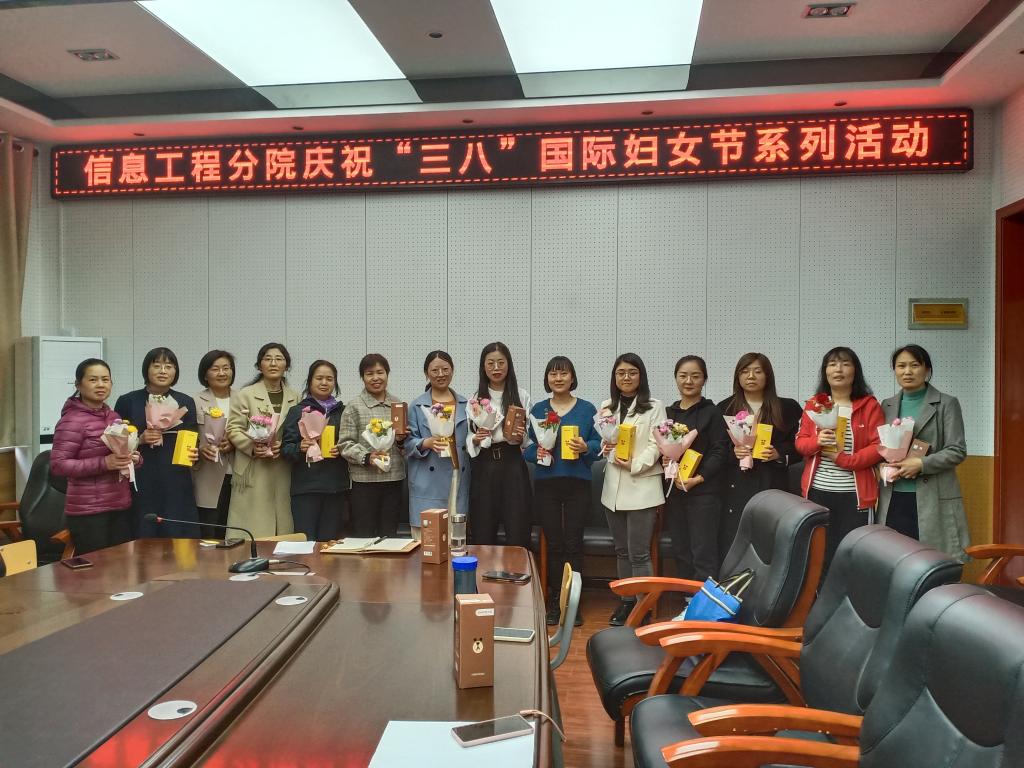信息工程学院工会在秦风楼举办了“巾帼心向党、女工在行动——双高建设我参与、我奉献”座谈会,向在教学能力大赛、学生技能大赛中获奖的女教职工表示祝贺,向在双高建设任务、教材建设、课程建设和教学方式方法改革中做出突出贡献的女教职工表示感谢,并邀请2011年陕西省健身健美锦标赛冠军——体育部杜清锋老师为大家做“强健巾帼体魄,奉献双高建设”健身技巧培训。
