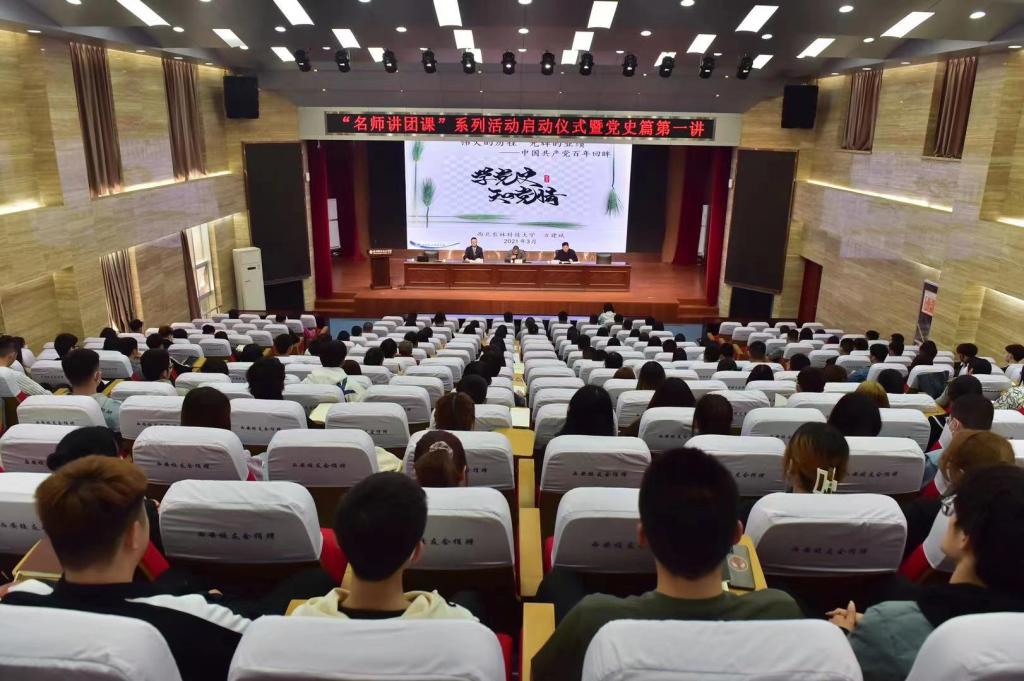 3月17日下午,校团委“名师讲团课”启动仪式暨党史篇第一讲在醒钟楼思辨堂举行。西北农林科技大学马克思主义学院教授、陕西省中共党史人物研究会常务理事方建斌应邀为师生开讲。党委学工部部长陈军峰各学工办主任、副主任,团总支书记、副书记(含学生副书记),团委全体干部,各分院团支部书记代表共200余人参加报告会。会议团委书记陈吼主持。