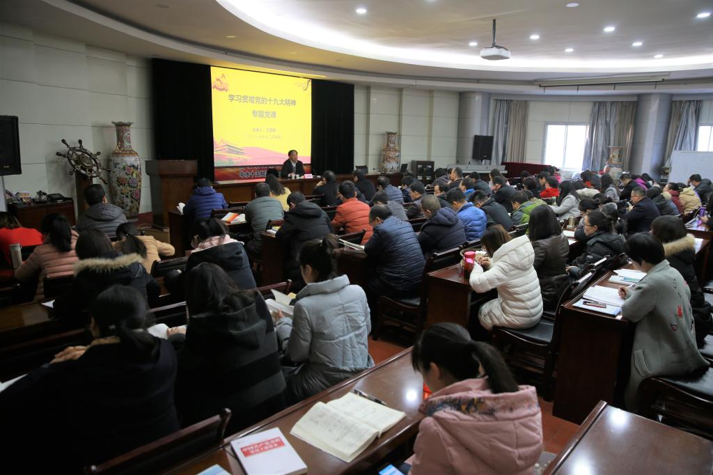为深入学习宣传贯彻党的十九大精神,进一步统一思想、凝聚共识,切实增强了广大教师立德树人、教书育人的宗旨意识,自觉用习近平新时代中国特色社会主义思想武装头脑、指导实践、推动工作,12月4日下午,学院党委副书记、院长王周锁在水韵楼二楼报告厅,为建筑工程分院和药物与化工分院全体教职工讲党的十九大精神专题党课。