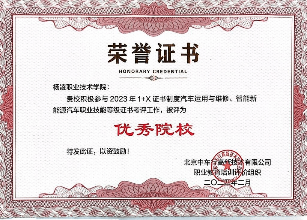 近日,北京中车行高新技术有限公司职业教育培训评价组织公布了“2023年1+X证书制度汽车运用与维修、智能新能源汽车职业技能等级证书考评工作”获奖名单,学校荣获职业技能等级证书考评工作“优秀院校”称号。