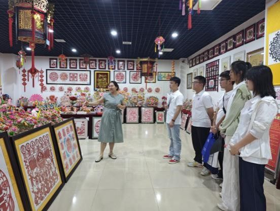 在合阳焕能民俗文化工坊,队员们见到了中华文化促进会剪纸艺术委员会委员、古莘书画院工艺美术专业委员会主任、省级非遗传承人赵焕能老人。满墙色彩艳丽的纸塑窗花作品,从“喜上眉梢”到“耕读传家”,一张张窗花诉说着农耕文明的浪漫。队员们围坐学习“折、画、剪、展”工序,从手忙脚乱到渐入佳境,在一次次尝试中感受非遗技艺的精妙。