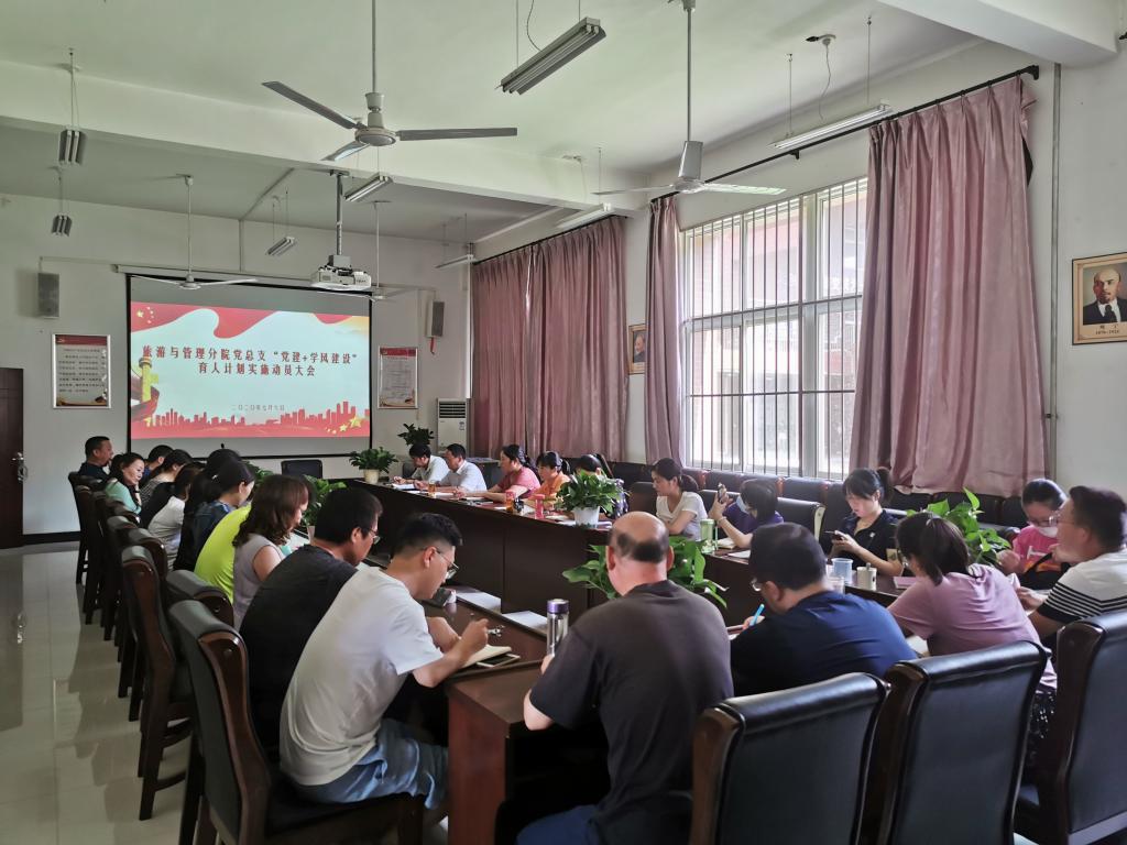 7月6日下午,旅游与管理分院党总支在北校区行知楼召开“党建+学风建设”育人计划实施动员大会,对该育人计划实施工作进行了安排部署。分院党总支书记董育公主持会议,全体党员及教职工参加了大会。