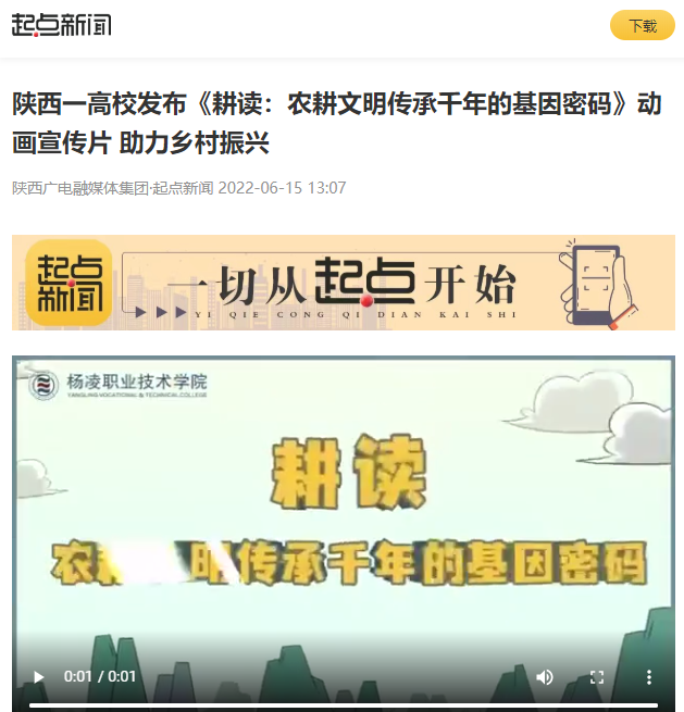 为贯彻落实教育部关于《加强和改进涉农高校耕读教育工作方案》,大力培养知农爱农新型人才,近日,杨凌职业技术学院策划、制作、发布动画宣传片《耕读:农耕文明传承千年的基因密码》,弘扬后稷文化,构建“力耕勤读”的耕读教育体系,为乡村振兴赋能助力。(记者:李宏杰 王锦)。