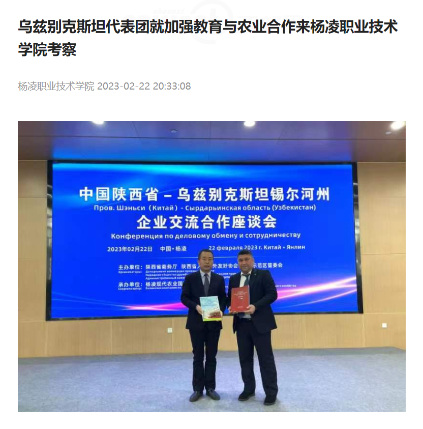 【今日头条】乌兹别克斯坦代表团就加强教育与农业合作来杨凌职业技术学院考察