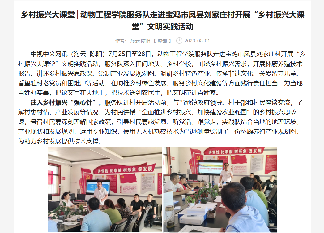 【中视中文网】动物工程学院服务队走进宝鸡市凤县刘家庄村开展“乡村振兴大课堂”文明实践活动