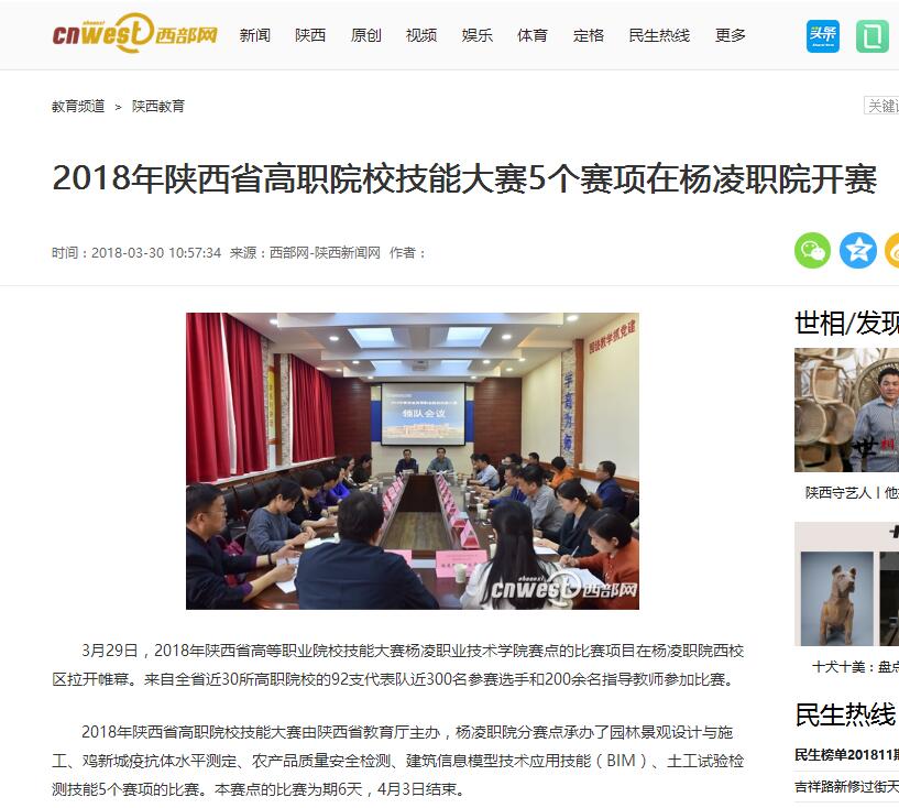 2018年陕西省高职院校技能大赛由陕西省教育厅主办,杨凌职院分赛点承办了园林景观设计与施工、鸡新城疫抗体水平测定、农产品质量安全检测、建筑信息模型技术应用技能(BIM)、土工试验检测技能5个赛项的比赛。本赛点的比赛为期6天,4月3日结束。