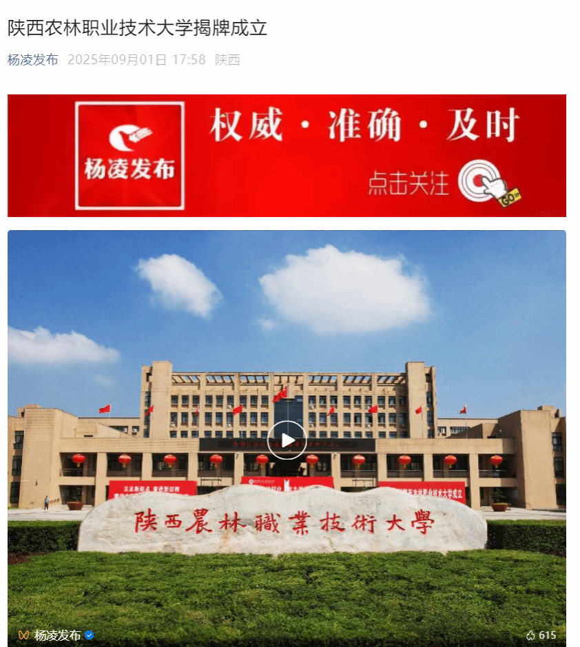 【杨凌发布】陕西农林职业技术大学揭牌成立