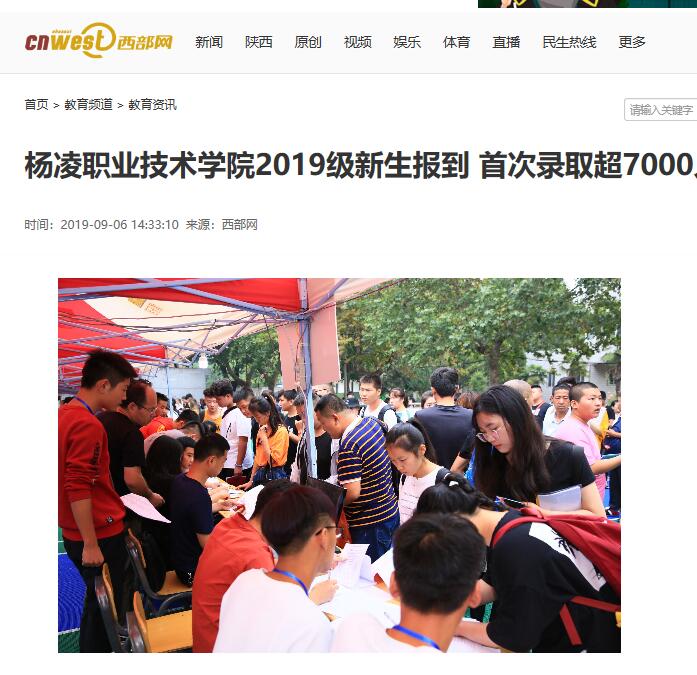 西部网讯 9月4日至5日,是杨凌职业技术学院2019级新生注册报到的日子,该院三校区内人声鼎沸,报到接待点、床上用品和军训用品领取处、家长休息处一派生机勃勃的景象。7183名新生怀揣梦想走进杨凌职院,开启他们新的人生旅程。据了解,这也是杨凌职院首次录取新生人数超过7000人。