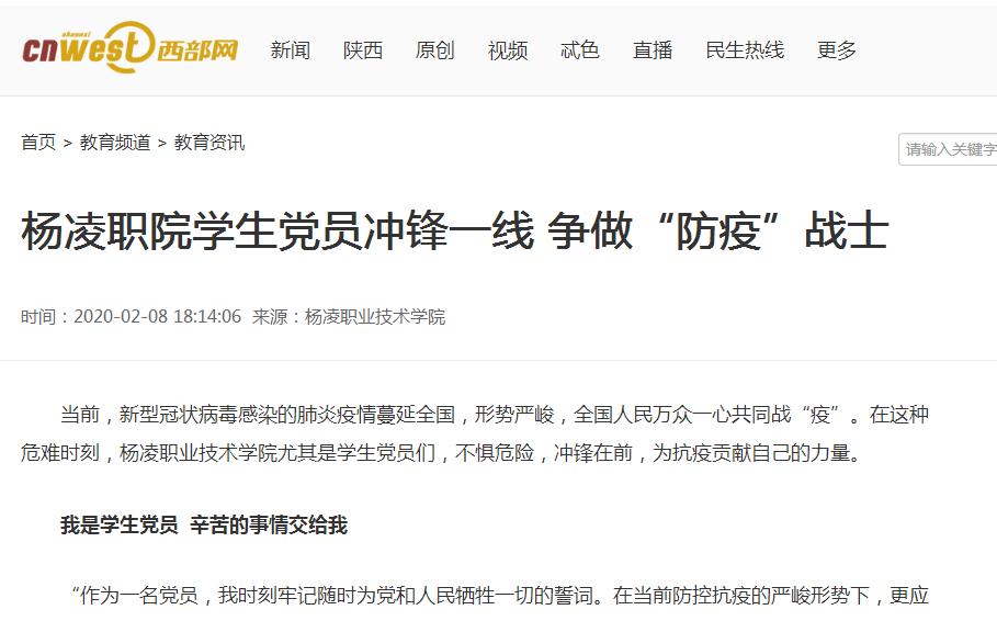 【西部网】杨凌职院学生党员冲锋一线 争做“防疫”战士
