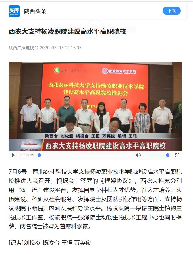 【陕西广播电视台】西农大支持杨凌职院建设高水平高职院校