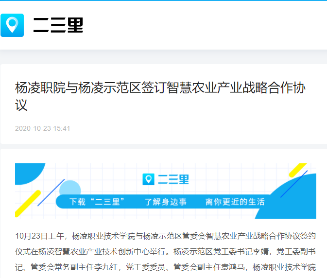 上一条:【群众新闻网】杨凌职院与杨凌示范区签订智慧农业产业战略合作协议 加快推动区校融合发展
