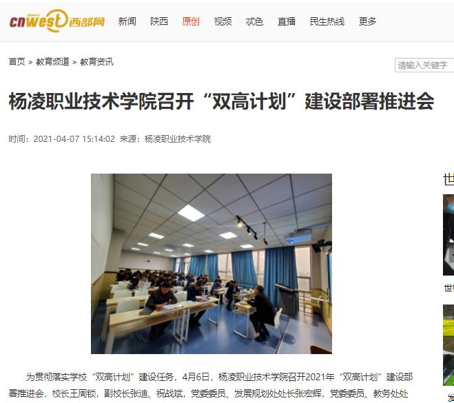 【西部网】杨凌职业技术学院召开“双高计划”建设部署推进会