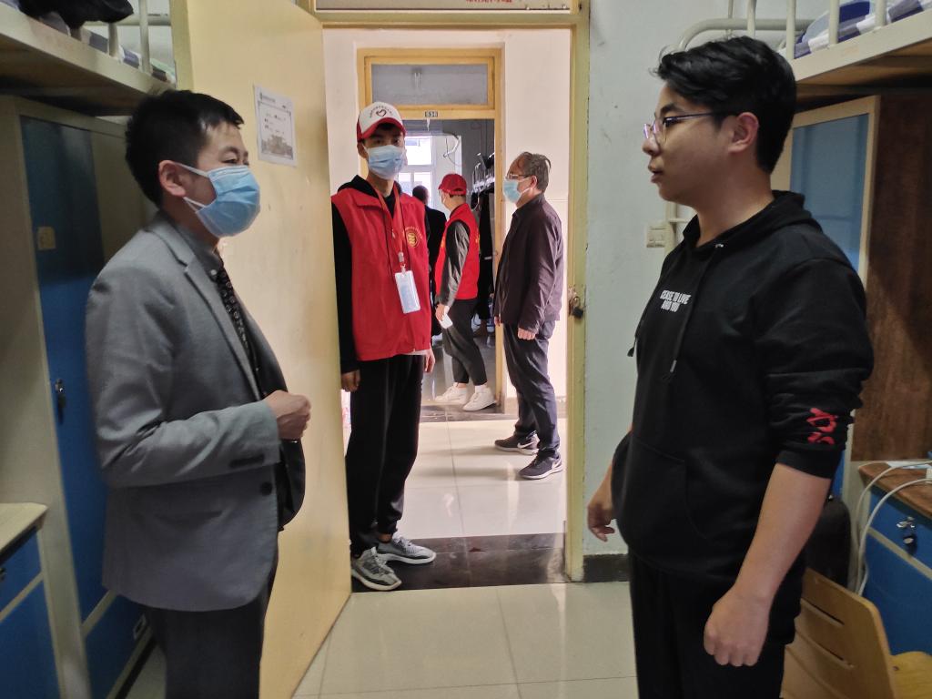 在看望同学过程中,老师详细询问了大家的身体状况、心理状态、返校时的交通工具等信息,叮嘱大家返校后一定注意身体状况,保持身体健康,保持宿舍卫生,保持心情愉快,遵守学校疫情管理规定,不要互窜宿舍,如果出现不适症状,要第一时间报告老师,不要隐瞒或协助隐瞒病情。与此同时,还对宿舍卫生、用电安全进行了排查,对发现卫生不达标、插线板连接不合规定的宿舍进行了登记,并立即进行了规整。