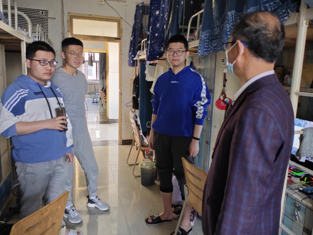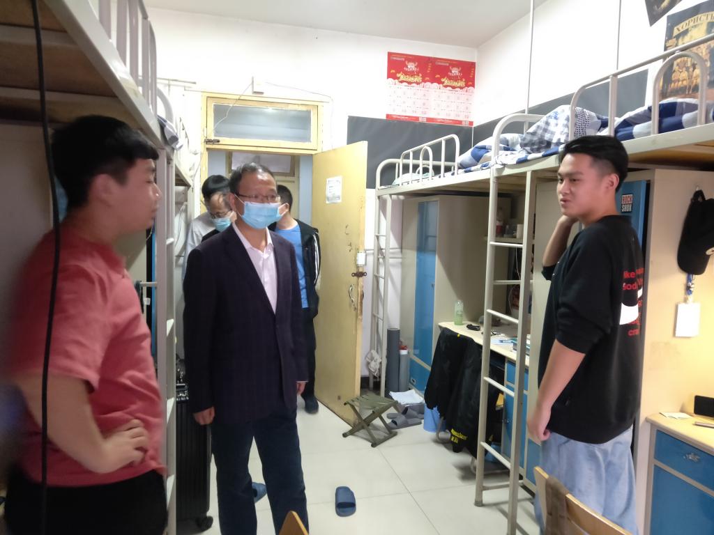 5月10日下午,信息工程分院党总支书记高掌平老师、学工办主任吴高潮老师以及学工办辅导员,进入学生宿舍看望返校同学。