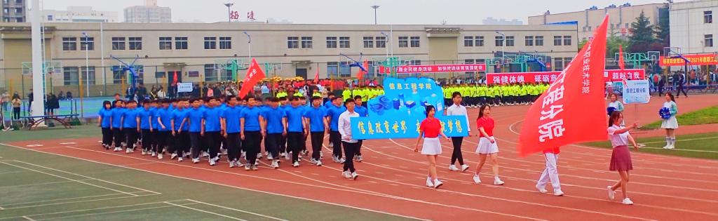 信息工程学院方阵整齐划一,步伐铿锵有力,口号整齐洪亮,他们个个精神饱满,英姿飒爽。
