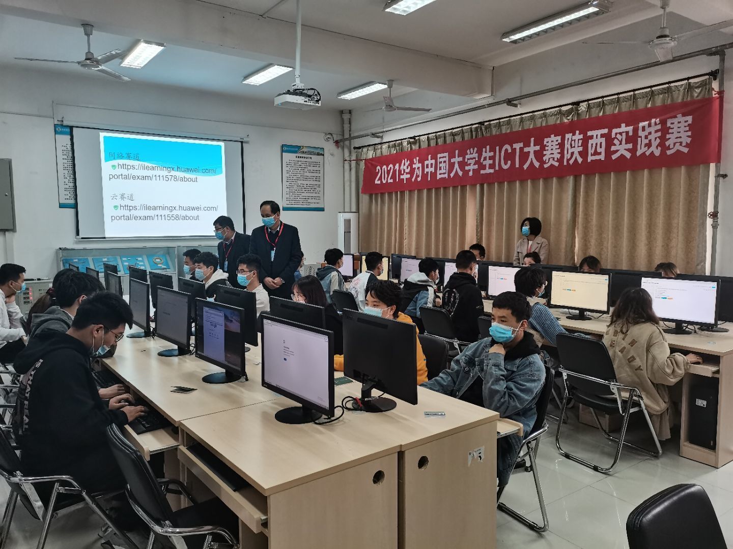 10月23日,我院承办的2021华为大学生ICT大赛正式开赛。华为ICT大赛”是一项全球性的ICT人才竞技交流赛事,该赛项举办后,迅速成为ICT领域规模最大的赛事和平台之一。2021年,该项赛事首次纳入全国普通高校大学生竞赛排行榜内竞赛项目名单,这代表华为ICT大赛成为中国高等教育学会认可的含金量高、参赛价值大的竞赛项目之一。本次比赛设“企业网络”和“云基础设施”两个赛道,我院共有200余名学生报名参赛,学生比赛热情高涨。