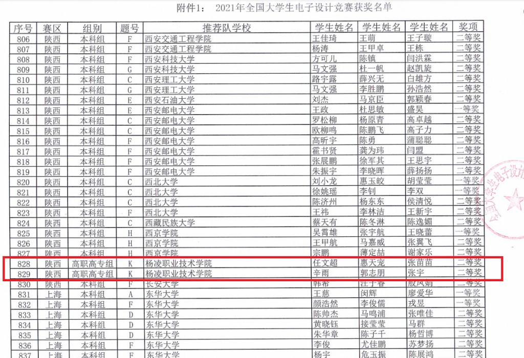 经陕西省电赛组委会推荐,我院有2支参赛队伍进入全国复测。2021年12月19日全国电赛组委会公布了参赛结果,由任文超、惠天宠、张苗苗和辛雨、郭志鹏、张宇组成的两支参赛队伍均获得国赛二等奖。此次获奖是我院参加该项赛事获得国赛奖项的首次突破,这将极大地激发学生的学习热情和自信心,有力的促进学生技能和教师指导水平的提升,进一步深化以赛促学、以赛促教,也为今后的比赛奠定了良好的基础。